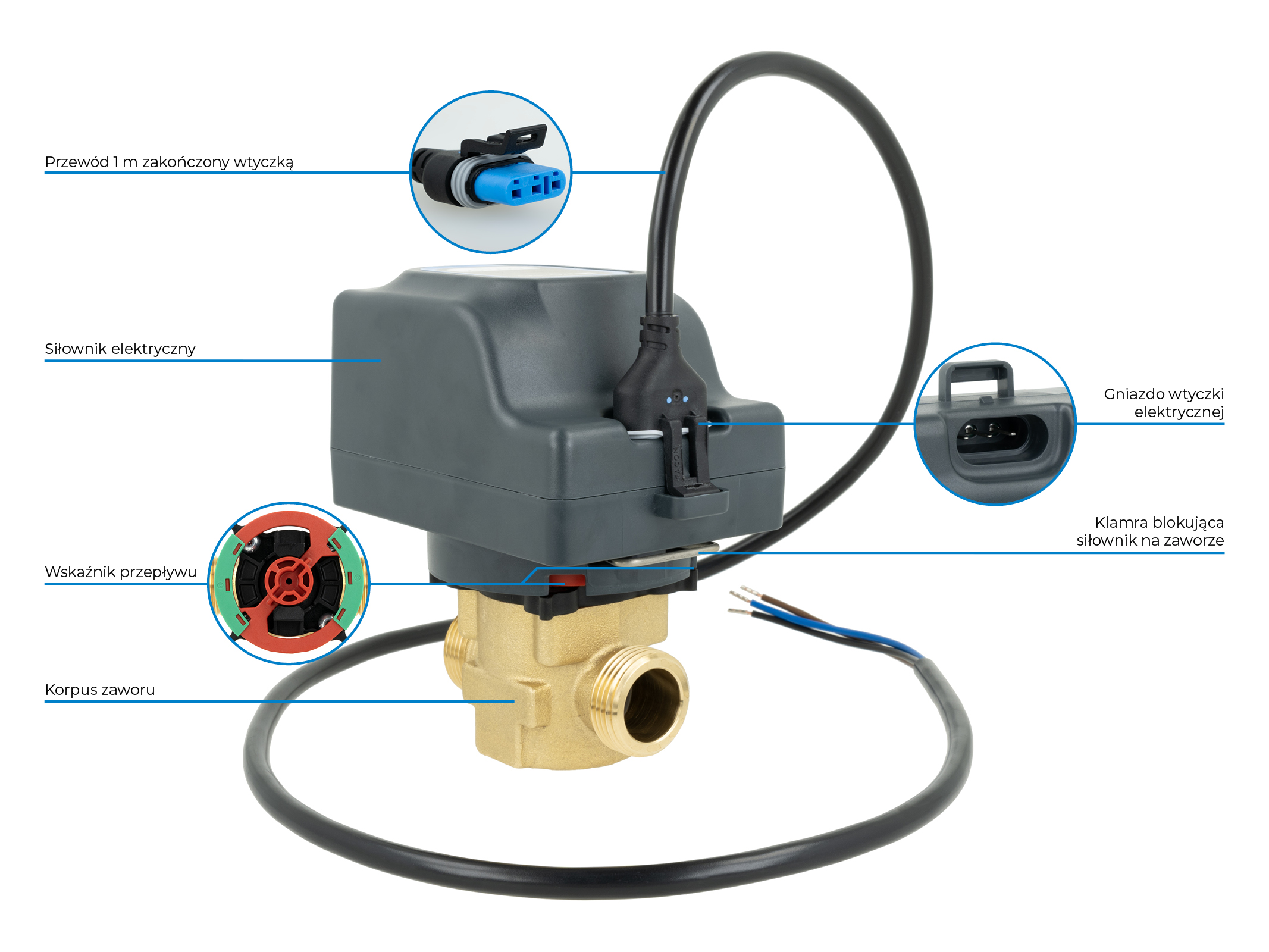 - W połączeniu ze sterownikiem lub termostatem automatyzuje pracę instalacji.