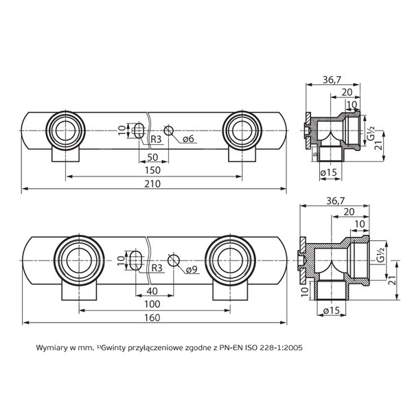 5119 O15xG1/2x100 PN16 Łączniki instalacyjne O15xG1/2 końcówki do kapilarnego lutowania miękkiego EN 1254-1, EN 1254-4