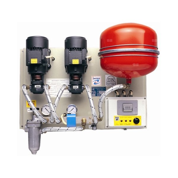 Dzięki zastosowaniu układu z dwiema pompami, zwiększamy ich żywotność jak również zapewniamy nieprzerwaną pracę układu w przypadku awarii jednej z pomp druga sprawna pompa przejmuje pracę po uszkodzonej.