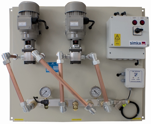 Dzięki zastosowaniu układu z dwiema pompami, zwiększamy ich żywotność, jak również zapewniamy nieprzerwaną pracę układu w przypadku awarii jednej z pomp druga sprawna pompa przejmuje pracę po uszkodzonej.