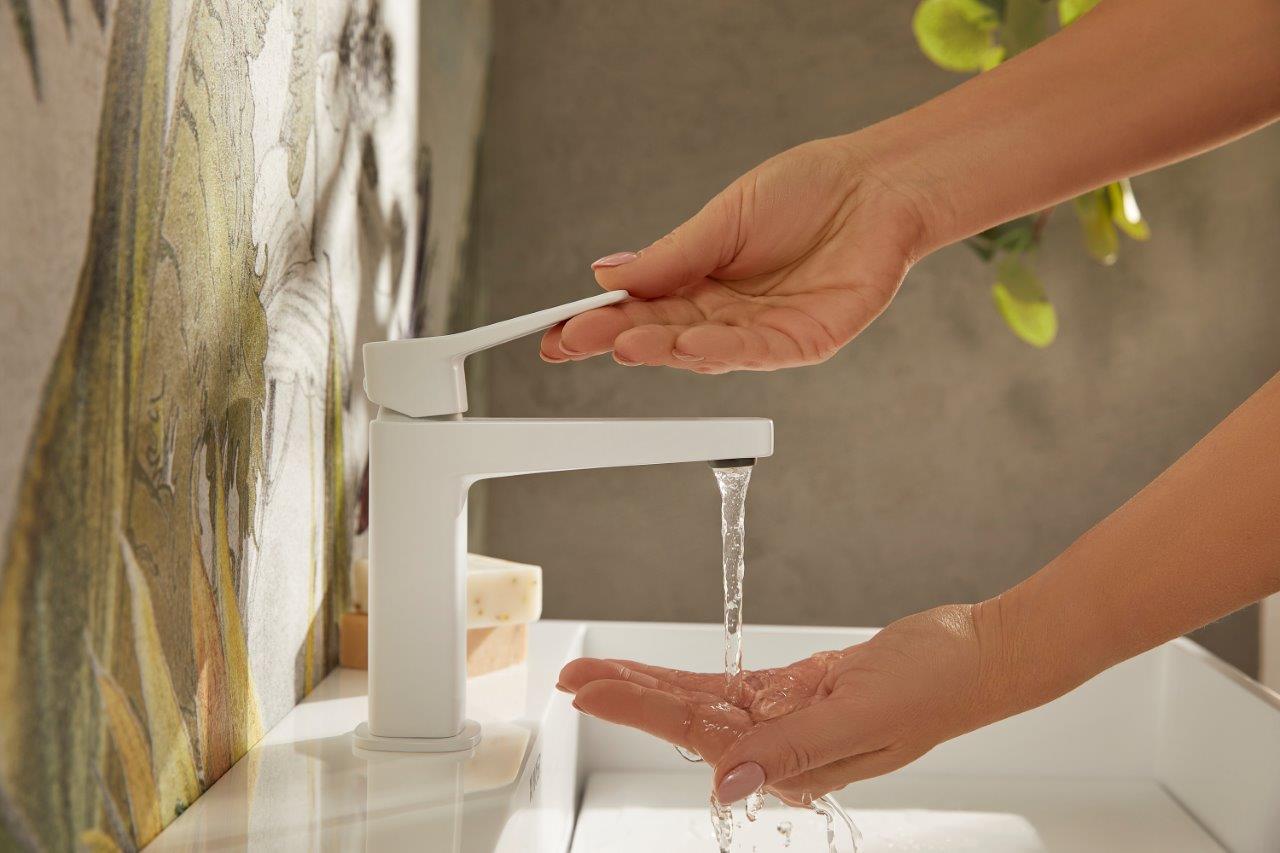 Bateria Malaga, umywalkowa, stojąca ze spustem klik-klak, white