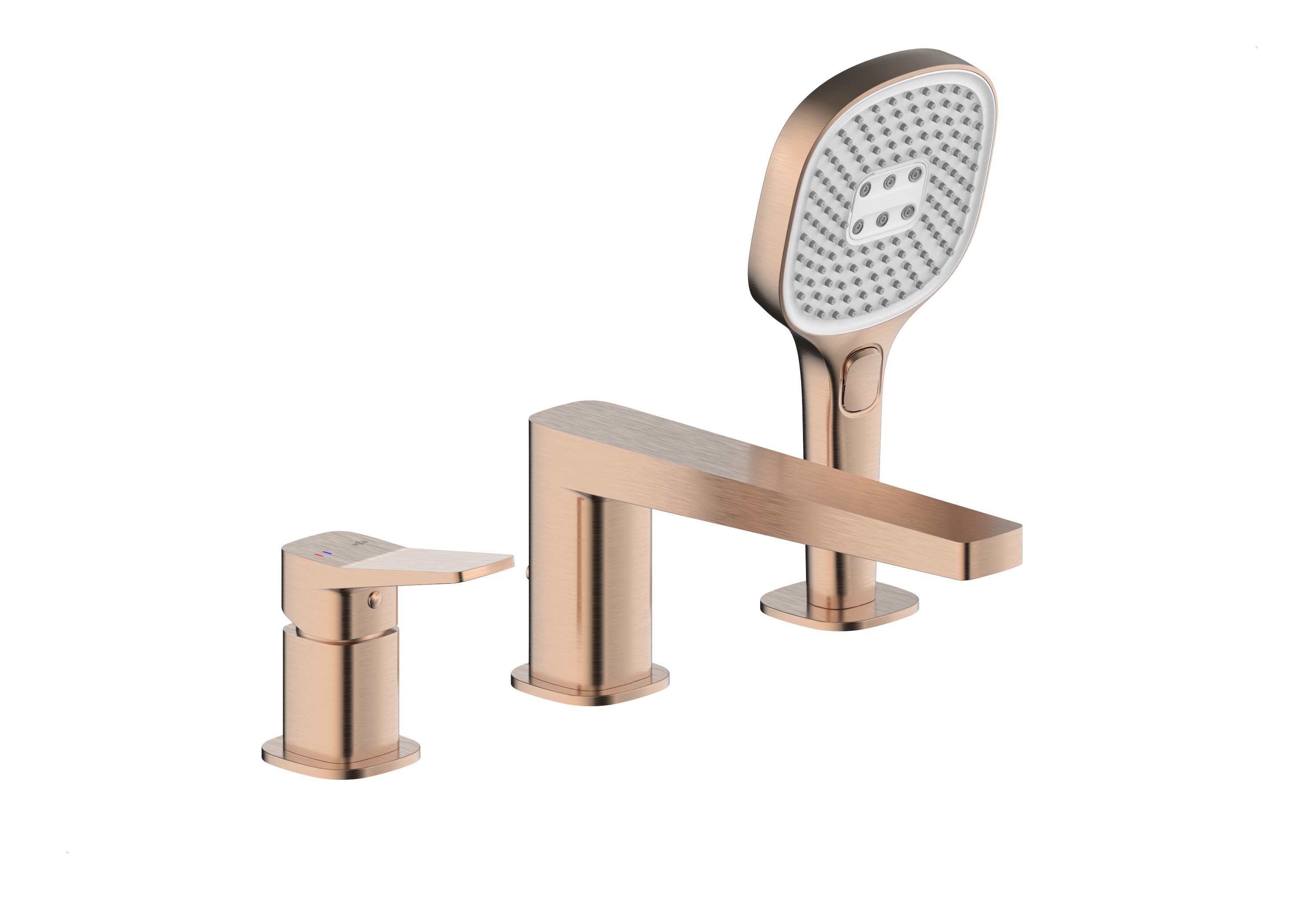 Bateria Malaga, wannowa, 3-otworowa stojąca, PVD brushed rose gold