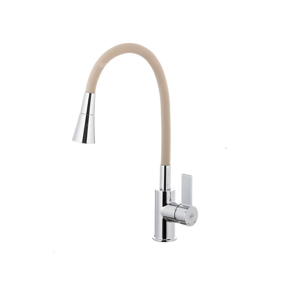 Bateria RUMBA Duo kuchenna stojąca z elastyczną wylewką, chrom-beżowy