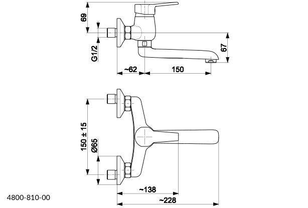 Bateria umywalkowa ścienna KFA Armatura BERYL, chrom, montaż natynkowa