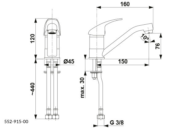 Bateria umywalkowa stojąca KFA Armatura BARYT, chrom, obrotowa wylewka, montaż blat / otwór na baterię