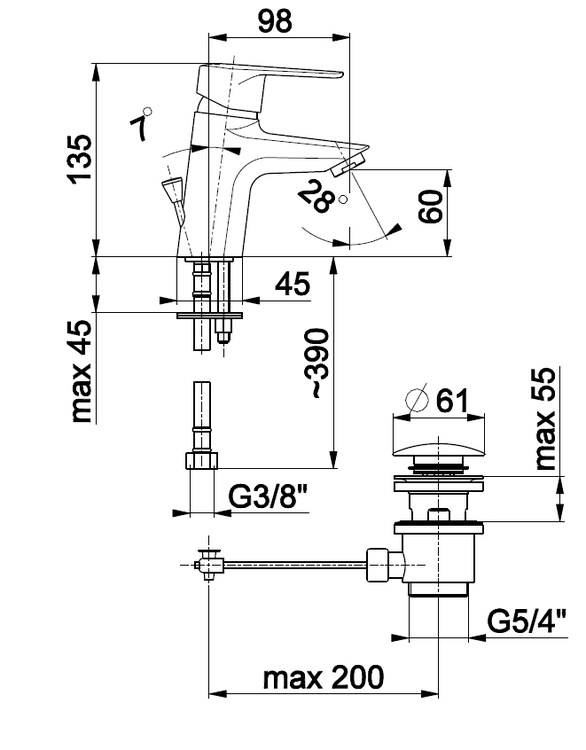 Bateria umywalkowa stojąca KFA Armatura GERMAN, chrom, montaż blat / otwór na baterię