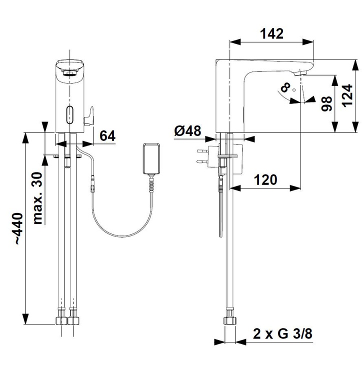- Element sterujący: elektrozawór zintegrowany w baterii