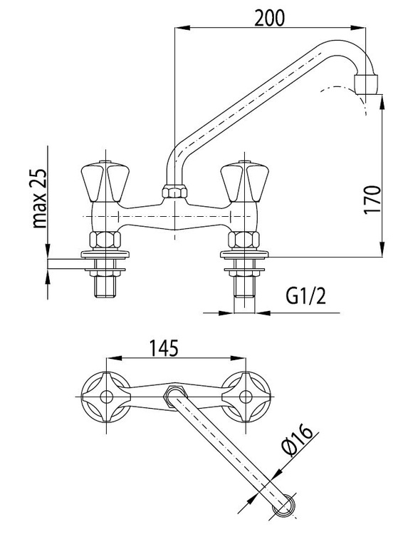 Bateria standard kuchenna stojąca z wylewką u16, 200 mm, chrom