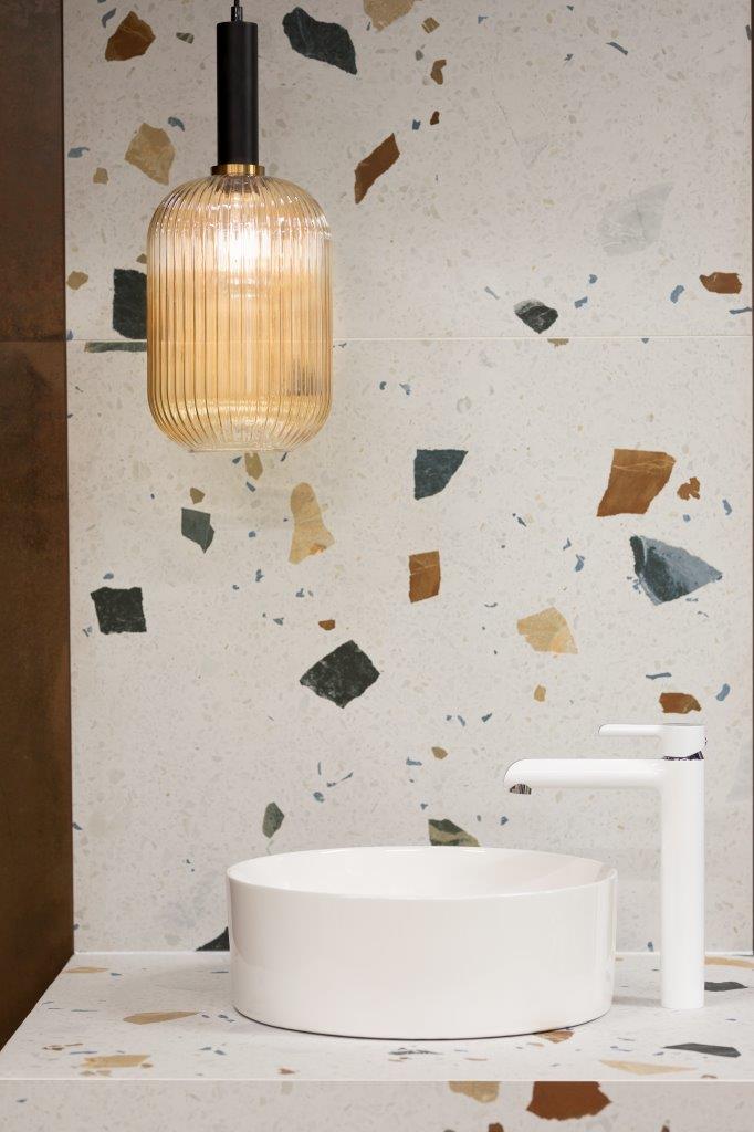 Bateria angelit umywalkowa stojąca nablatowa biała-Chrom