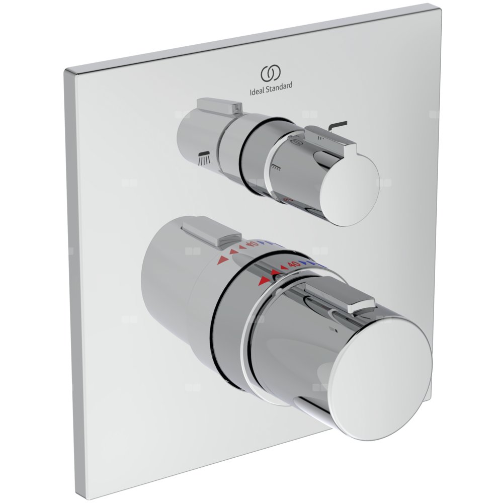 Zestaw montażowy podtynkowej baterii termostatycznej wannowo-natryskowej. Głowica termostatyczna IS. Dwukierunkowy ceramiczny zawór talerzowy włącz/wyłącz 90° ze zintegrowanym przełącznikiem. Brak akcesoriów w komplecie. Uchwyt z ogranicznikiem temperatury do 40°C. Chromowana, metalowa rozeta o wymiarze 163 mm x 163 mm x 10,5 mm. Uszczelniony szyld pod rozetę izolujący wodę od ściany. Maksymalny przepływ przy ciśnieniu 3 bary - 23 l/min. Do skompletowania z uniwersalnym zestawem podtynkowym EASY-BOX A1000NU.