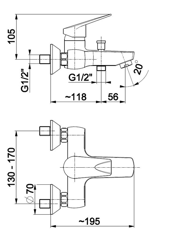 Bateria wannowa ścienna KFA Armatura TOPAZ, kolor chrom