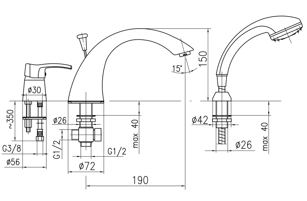 Bateria wannowa stojąca KFA Armatura KWARC, kolor chrom