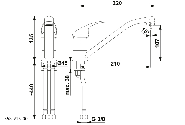 Bateria zlewozmywakowa stojąca KFA Armatura BARYT, obrot. wylewka, kolor chrom, mosiądz
