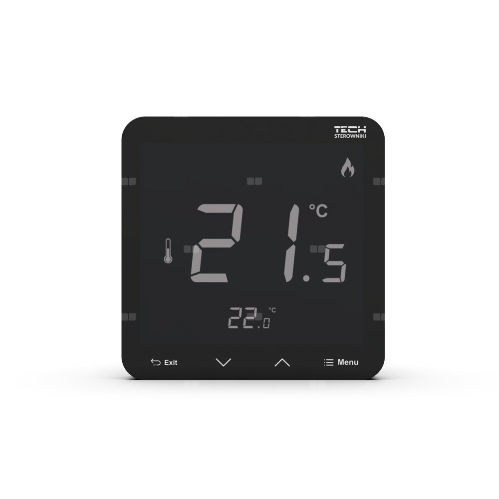 Bezprzewodowy regulator pokojowy bateryjny dopuszkowy czarny, model R-8pb PLUS