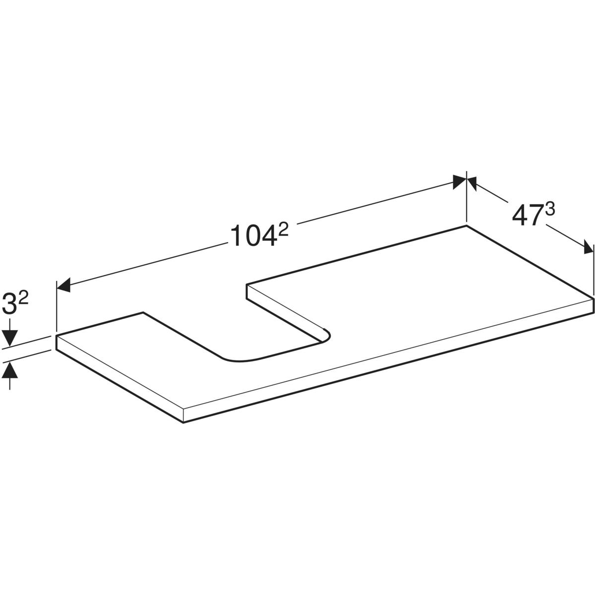 Blat pod umywalkę Geberit ONE z wycięciem, do umywalki nablatowej w kształcie misy: B=104.2cm, Lava, Lakierowany matowy, Przekrój=Lewa strona
