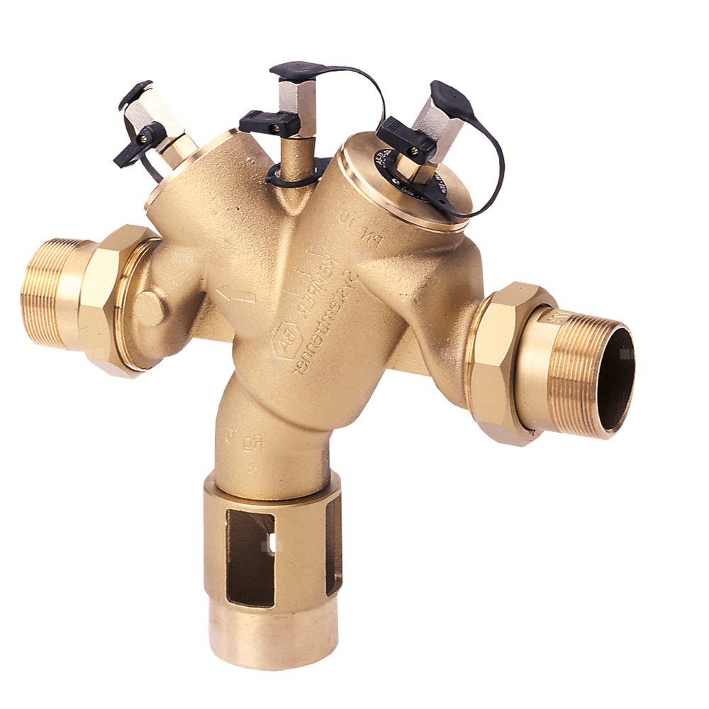 Przerywacz strugi MULTIMAT to urządzenie zapobiegające przepływowi wstecznemu wody niezdatnej do picia, do sieci wodociągowej lub instalacji wody pitnej. Działa niezależnie od ciśnienia na wejściu. Wyposażony w zawór zwrotny, nie wymaga zewnętrznego zasilania. Posiada atest PZH. Obudowa z czerwonego mosiądzu, sprężyna i gniazdo zaworu ze stali nierdzewnej, przyłącza manometrów z zaworami odcinającymi, zawór zwrotny na wlocie, zawór spustowy w komorze środkowej, zawór zwrotny na wylocie. Klasa BA.