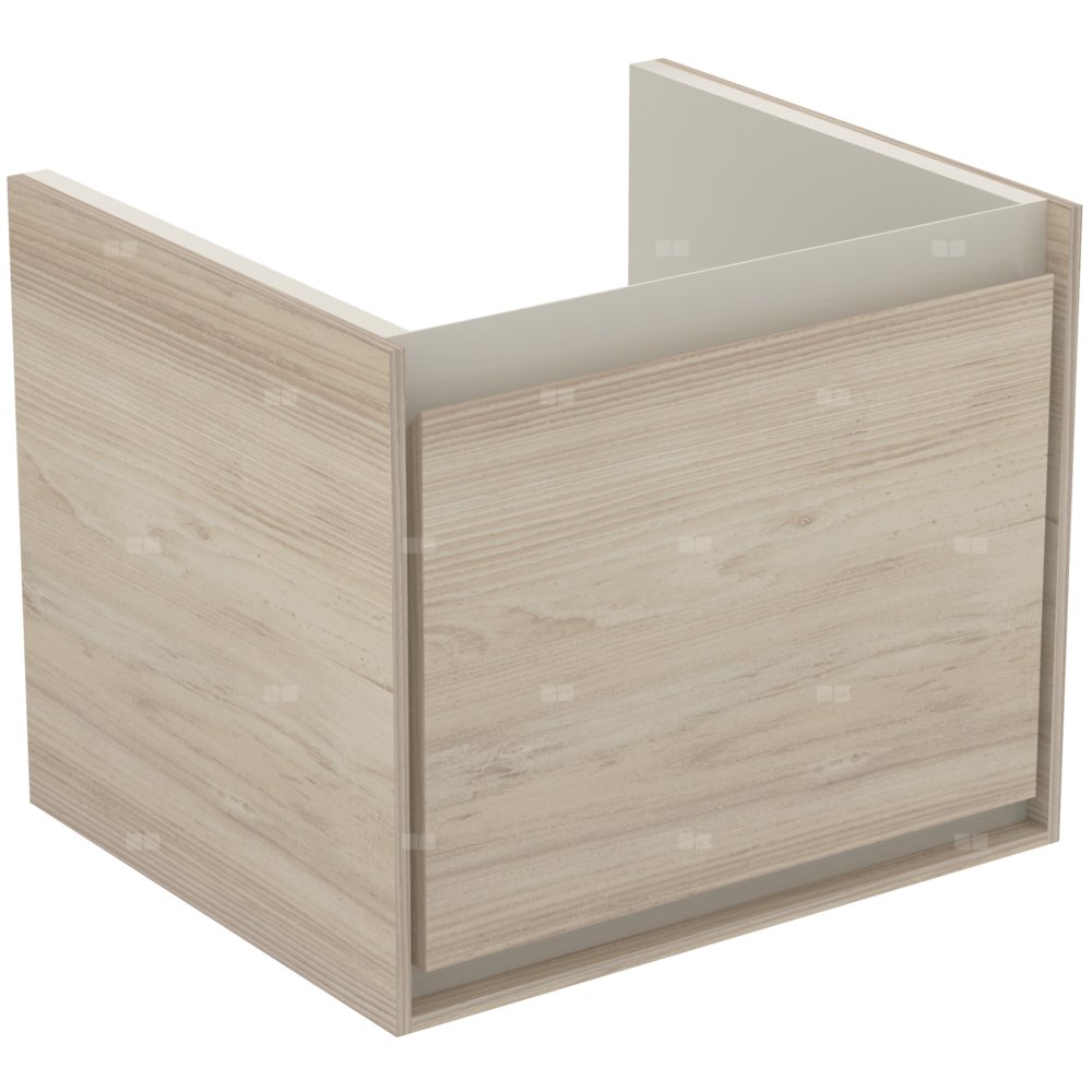 Wisząca. 1 szuflada ze zintegrowanym uchwytem. Szuflady z systemem samodomykania. Zestaw montażowy w komplecie. Szafka do skompletowania z: umywalką Cube 55 cm E074401. Zalecany: syfon oszczędzający przestrzeń EE23033967 (zamawiany oddzielnie).