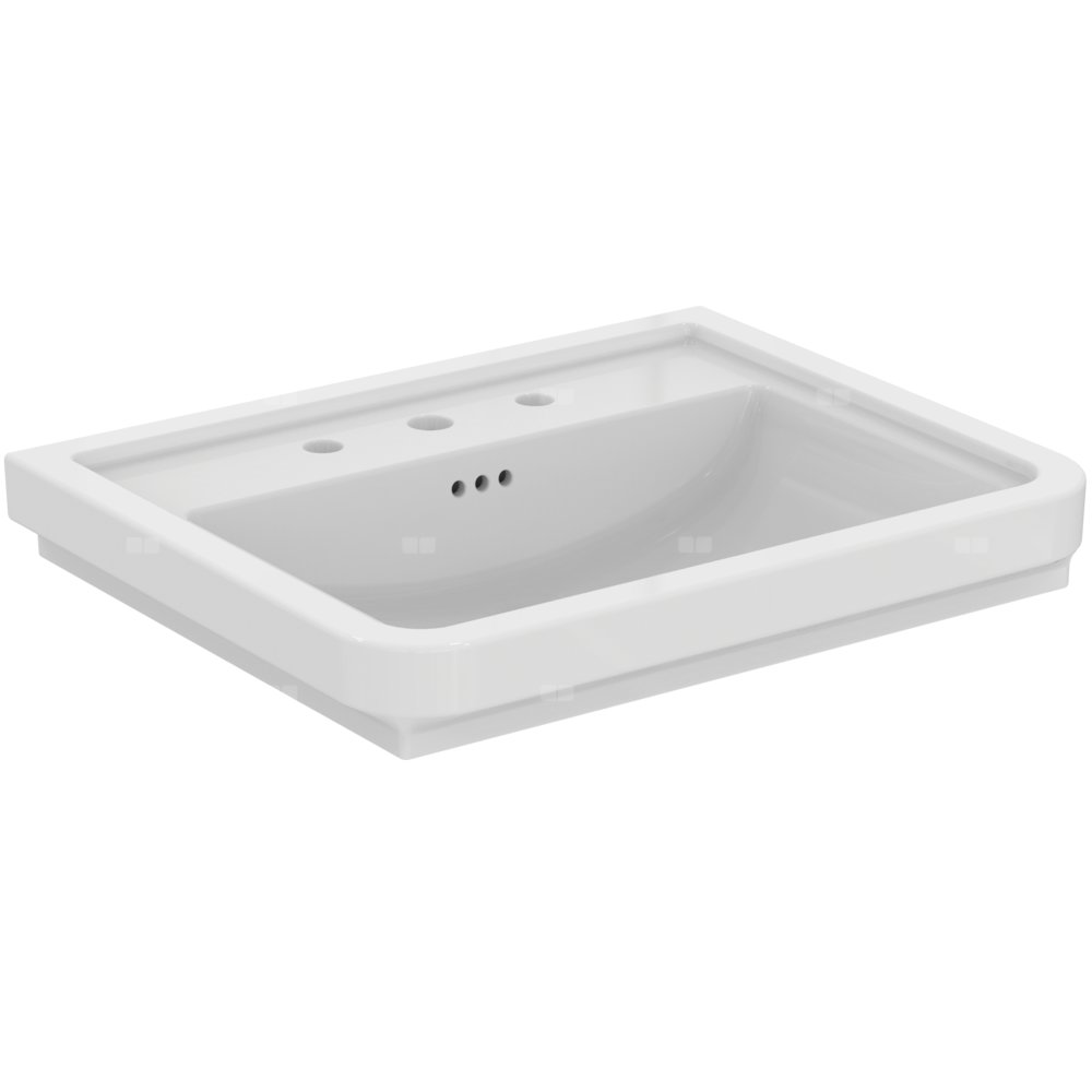 Umywalka wisząca Calla Vanity z 3 otworami na baterię wybijanymi i przelewem (z 3 otworami). Do montażu z: Calla Pedestal lub samodzielnie z syfonem Design. Zobacz listę wyposażenia opcjonalnego w katalogu/cenniku Atelier Collections.