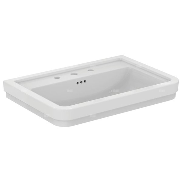 Umywalka wisząca Calla z 3 otworami na baterię wybijanymi i przelewem (z 3 otworami). Do montażu z: Calla Pedestal lub samodzielnie z syfonem Design. Zobacz listę wyposażenia opcjonalnego w katalogu/cenniku Atelier Collections.