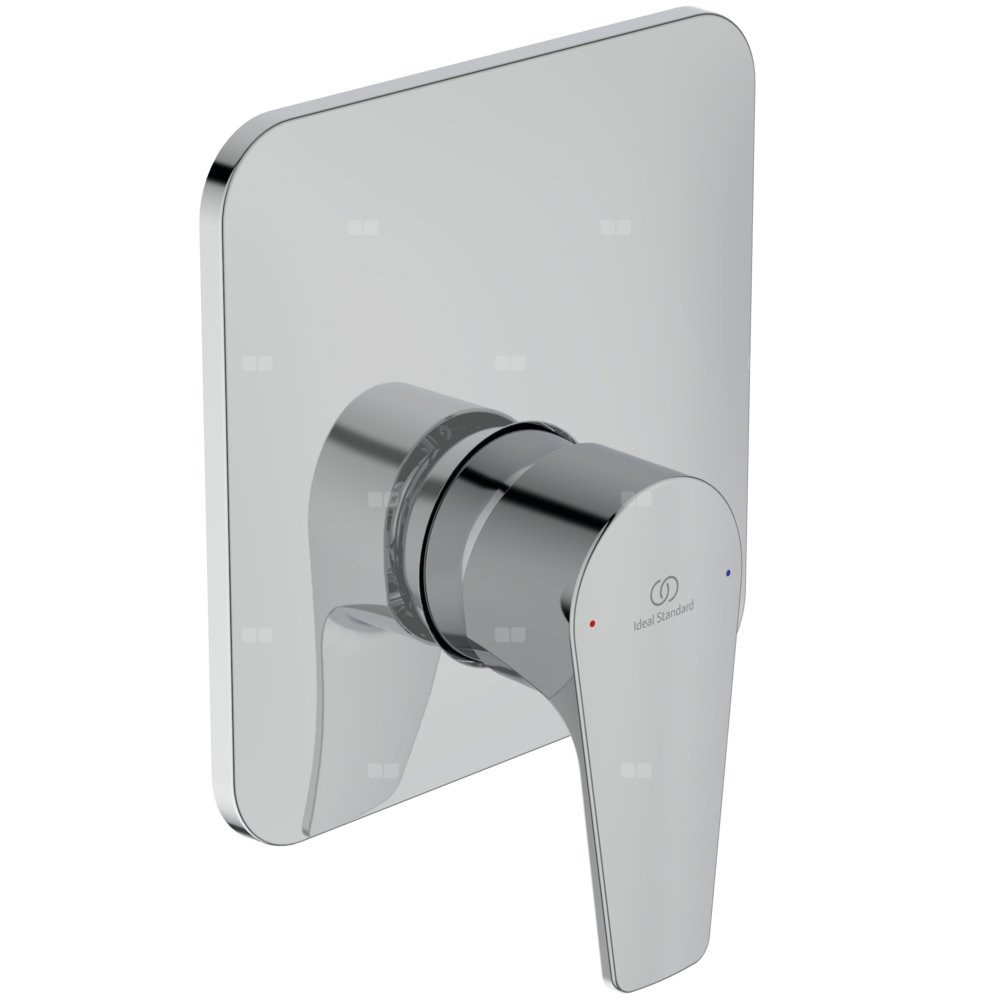 Zestaw montażowy podtynkowej baterii natryskowej (kompletny). Głowica IS 47 mm CLICK. Metalowy uchwyt z nadrukowanymi czerwonymi i niebieskimi oznaczeniami. Metalowa rozeta. Wykończenie: galwaniczne (AA), malowane proszkowo (U8). Zgodny z EN817.
