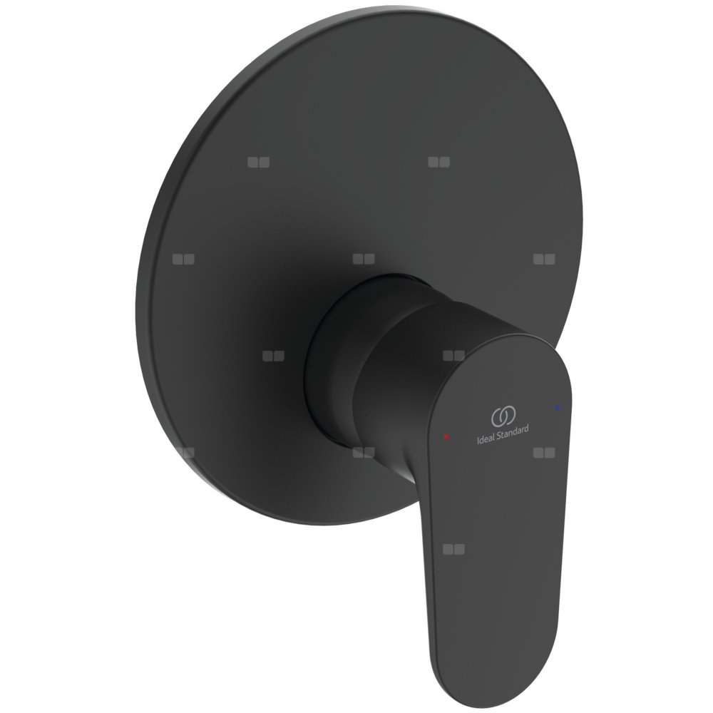 Zestaw montażowy (widoczna część). Głowica 47 mm CLICK. Metalowy uchwyt z nadrukowanymi czerwonymi i niebieskimi oznaczeniami. Chromowana rozeta z tworzywa. Zgodność z EN817. Do skompletowania z uniwersalnym zestawem podtynkowym A1000NU.