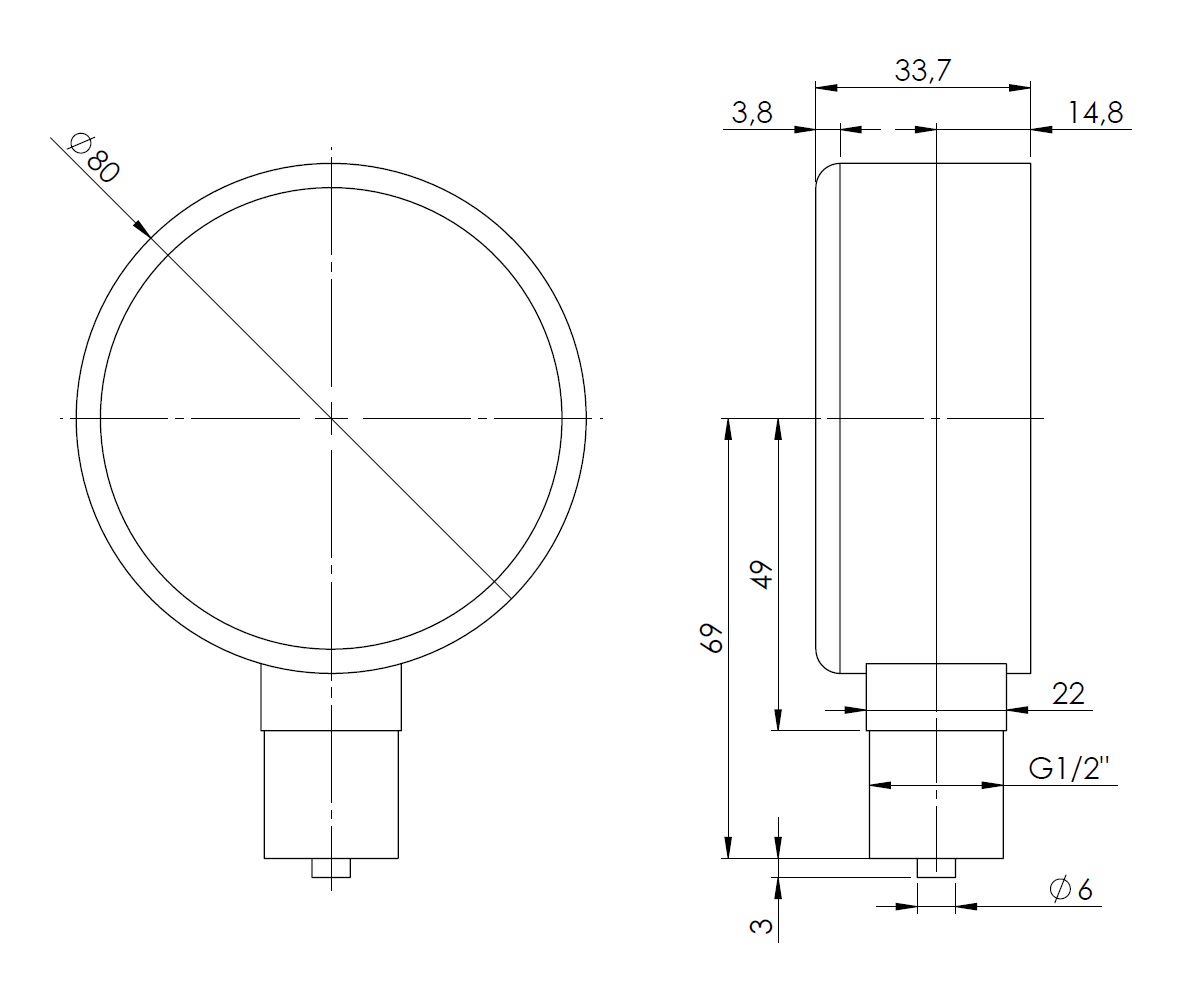 Przeznaczony do pomiaru ciśnień gazów suchych, które nie działają niszcząco na stopy miedzi.