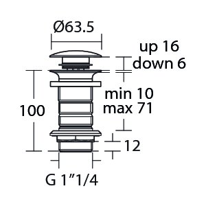 Korek typu Click-Clack 1 1/4” do umywalki z przelewem (E1482XG). Wykonany z mosiądzu Korek z otworami do umywalek bez otworu przelewowego.