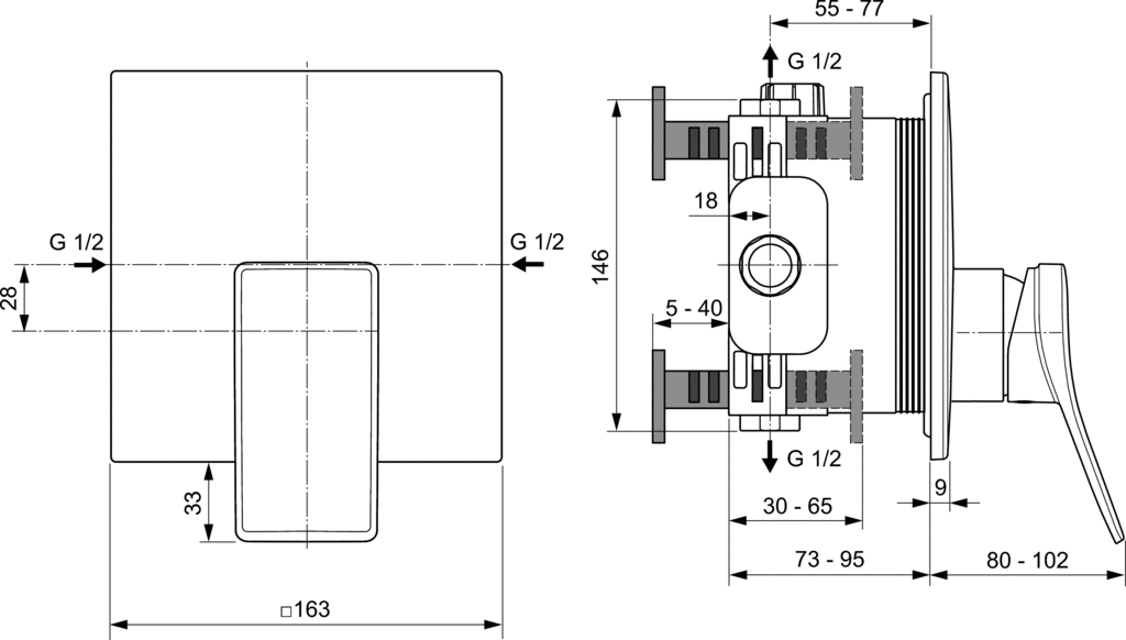 Zestaw montażowy baterii natryskowej ściennej Conca. Głowica ceramiczna 28 mm z ogranicznikiem temperatury wody. Element zewnątrzny, do skompletowania z elementem montażowym. Odlewana wylewka długości 220 mm. Metalowy uchwyt z logo Ideal Standard bez oznaczeń. Metalowa chromowana rozeta z logo Ideal Standard. Do skompletowania z elementem montażowym: EASY-BOX A1000NU.