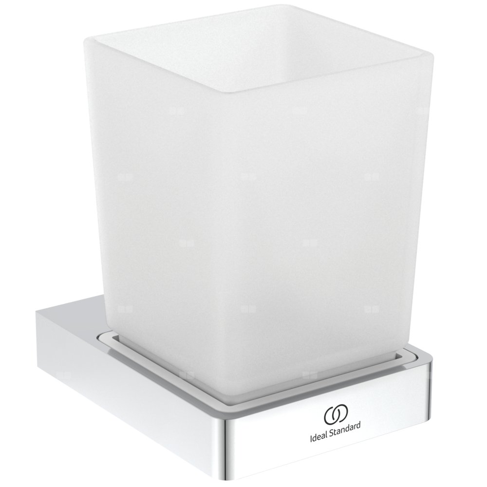 Kubek toaletowy Conca kwadratowy wiszący szklany. Szkło matowe. Zestaw montażowy w komplecie. Dostępne wykończenia: - technologia galwanizacji (AA), - technologia PVD (GN, A2, A5).