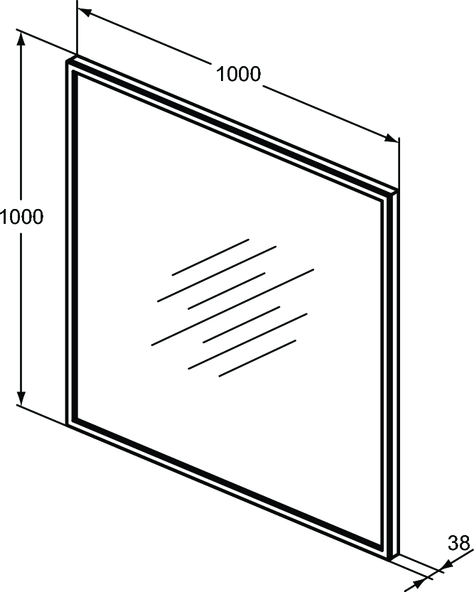 Dioda LED, Czarna rama, 1000 x 1000 x 38 mm.