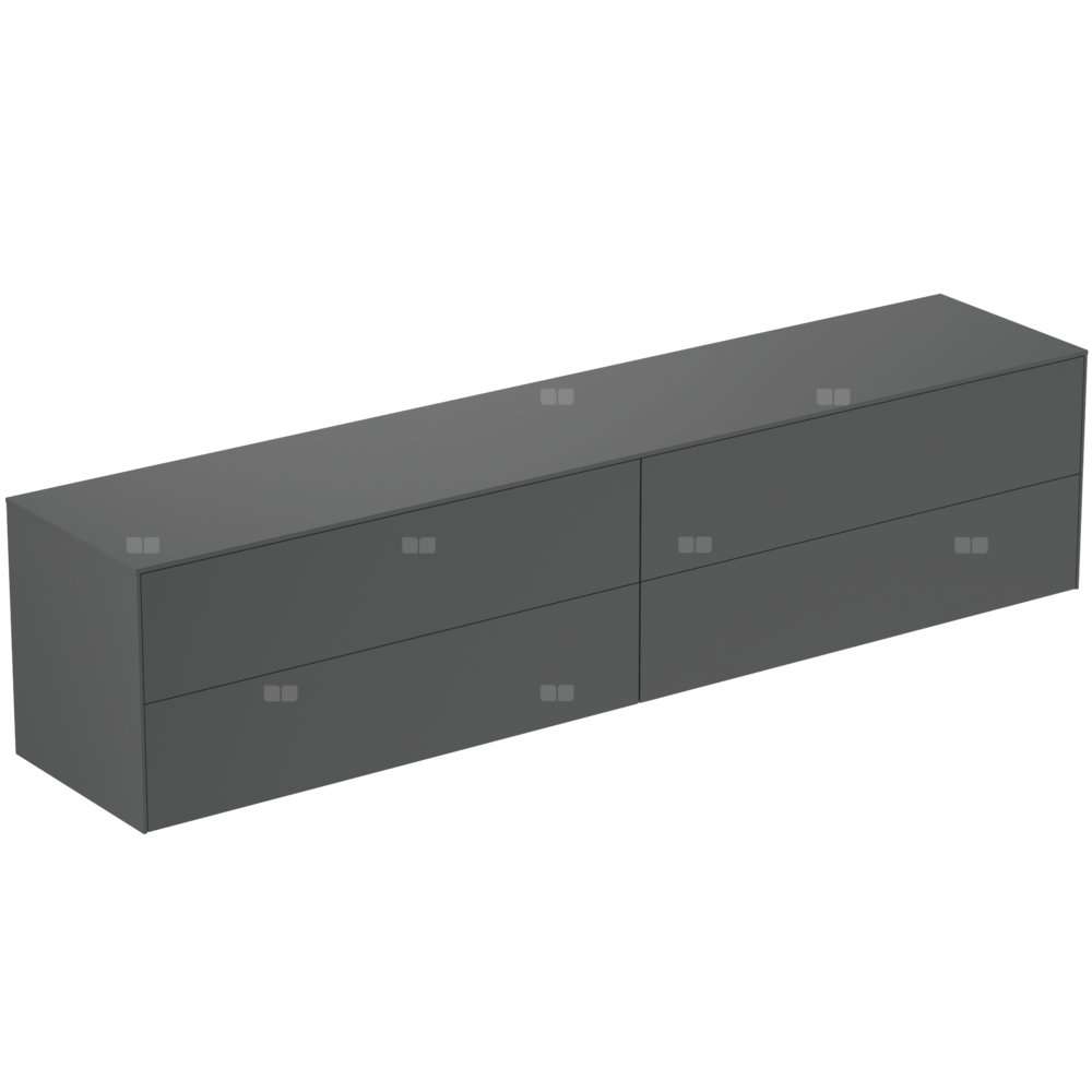 Z 4 szufladami z funkcjami push to open i samodomykania "soft close". Wykończenie wewnętrzne szafek w kolorze antracytowym. Do samodzielnego montażu lub kompletowania z następującymi umywalkami 40-120 cm: Conca wisząca (szlifowana od spodu), umywalki Conca z powierzchniami bocznymi, umywalkami Extra wiszącymi, umywalkami nablatowymi Extra oraz umywalkami nablatowymi Ipalyss. Rekomendowane wyposażenie: syfon oszczędzający przestrzeń EE23033967 - do zamówienia osobno. Do wycięcia przy użyciu szablonu dołączonego do umywalek (bez możliwości cięcia na blacie).