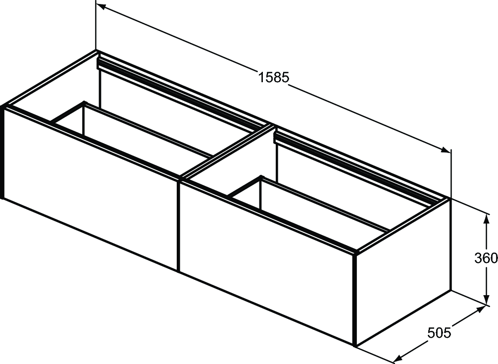 Z 2 szufladami z funkcjami push to open i samodomykania "soft close". Wykończenie wewnętrzne szafek w kolorze antracytowym, pasujące do koloru szuflad. Do kompletowania z blatem ceramicznym 160 cm T4202. Blat ceramiczny (bez otworu/z otworem na zamówienie) zamawiany oddzielnie pod wymiar wybranej umywalki. Rekomendowane wyposażenie: syfon oszczędzający przestrzeń EE23033967 - dostępny w osobnym zamówieniu.
