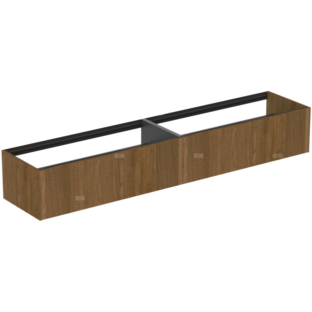 Z 2 szufladami z funkcjami push to open i samodomykania "soft close". Wykończenie wewnętrzne szafek w kolorze antracytowym, pasujące do koloru szuflad. Do kompletowania z blatem ceramicznym 240 cm T4343. Blat ceramiczny (bez otworu/z otworem na zamówienie) zamawiany oddzielnie pod wymiar wybranej umywalki. Rekomendowane wyposażenie: syfon oszczędzający przestrzeń EE23033967 - dostępny w osobnym zamówieniu.