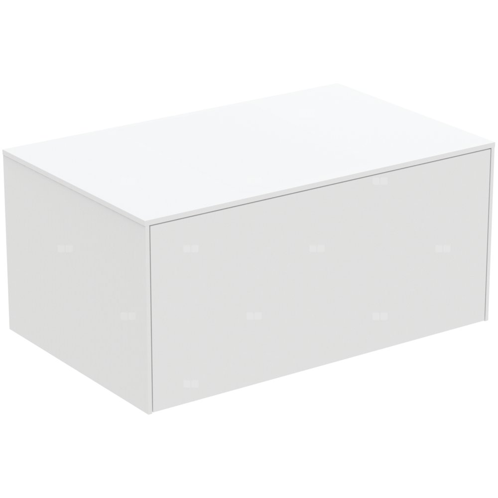 Szafka pod umywalkę bez wycięć na blacie. Z 1 szufladą z funkcjami Push to open i wolnym zamykaniem. Wykończenie wewnętrzne szafek w kolorze antracytowym. Do samodzielnego montażu lub do kompletowania z umywalkami (z wykorzysteniem szablonów do wycięcia otworu).