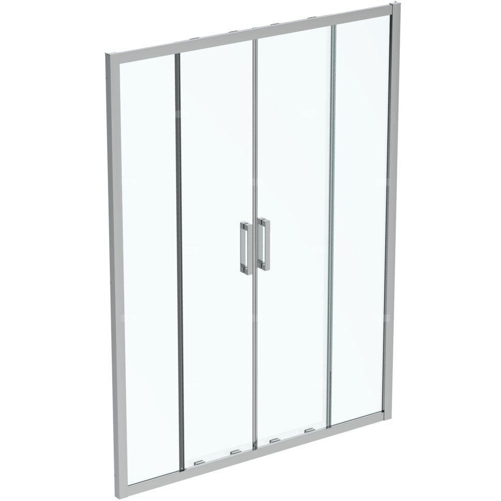 CONNECT 2 Podwójne drzwi prysznicowe przesuwne. Wysokość 195 cm. Bezpieczne, hartowane, szkło grubości 6 mm. Szkło przeźroczyste pokryte w standardzie powłoką IDEAL CLEAN ułatwiającą utrzymanie czystości. Profile aluminiowe dostępne w kolorach srebrnym połysk i biały mat. Wygodne metalowe uchwyty drzwi długości 225 mm w kolorze chrom. Drzwi kabiny z funkcją ułatwiająca czyszczenie „Click & Clean” (możliwość szybkiego odpięcia dolnej części drzwi). Drzwi przesuwne z wysokiej jakości rolkami zapewniającymi ciche i płynne działanie. Profile ułatwiające montaż i dostosowanie wymiarów kabiny w zakresie do 25 mm. Drzwi przesuwne do montażu we wnęce lub do skompletowania z wybraną ścianką boczną jako kabina narożna. Możliwość montażu bezpośrednio na podłodze lub skompletowania z odpowiednimi brodzikami Ideal Standard. Zalecane dodatkowe elementy: CONNECT 2 Ścianka boczna w wybranym rozmiarze. Uwaga: Drzwi kabiny są odwracalne.
