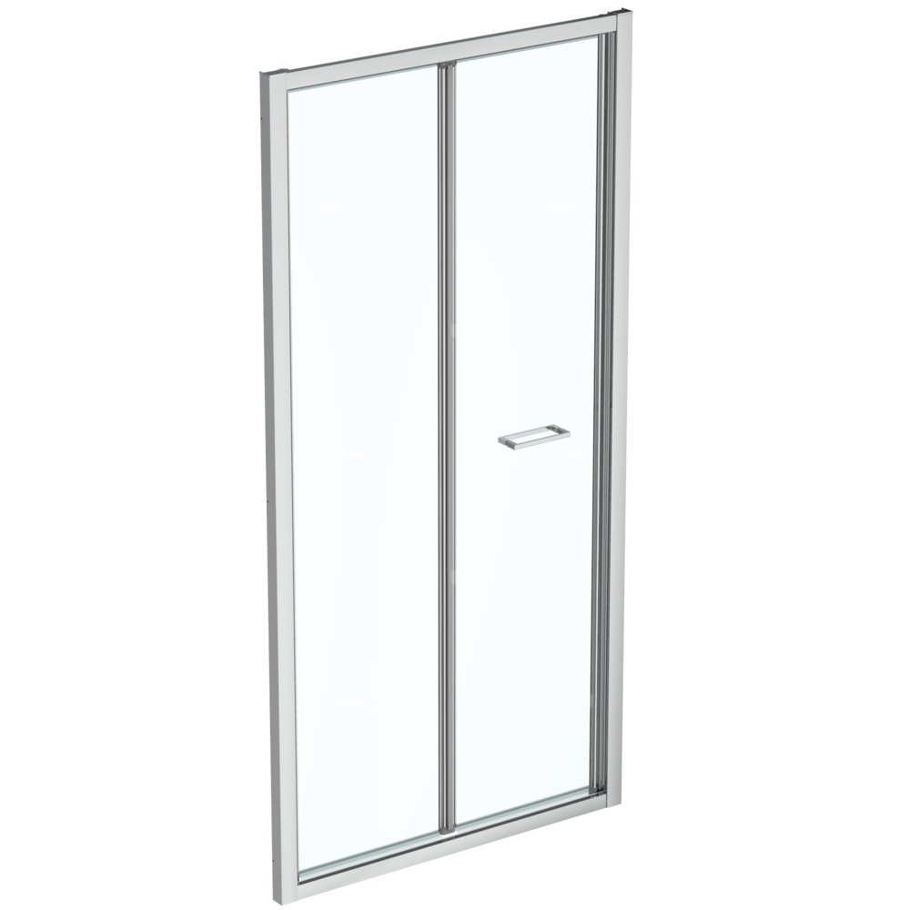 CONNECT 2 Drzwi prysznicowe składane. Wysokość 195 cm. Bezpieczne, hartowane, szkło grubości 6 mm. Szkło przeźroczyste pokryte w standardzie powłoką IDEAL CLEAN ułatwiającą utrzymanie czystości. Profile aluminiowe dostępne w kolorach srebrnym połysk i biały mat. Wygodne metalowe uchwyty drzwi długości 225 mm w kolorze chrom. Profile ułatwiające montaż i dostosowanie wymiarów kabiny w zakresie do 25 mm. Drzwi składane na zewnątrz i do wewnątrz do montażu we wnęce lub do skompletowania z wybraną ścianką boczną jako kabina narożna. Możliwość montażu bezpośrednio na podłodze lub skompletowania z odpowiednimi brodzikami Ideal Standard. Zalecane dodatkowe elementy: CONNECT 2 Ścianka boczna w wybranym rozmiarze. Uwaga: Drzwi kabiny są odwracalne.