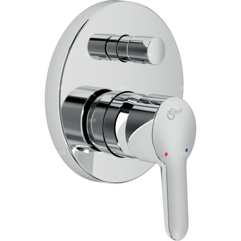 Zestaw montażowy baterii wannowo-natryskowej podtynkowej Connect Blue. Głowica 47 mm IS z HWTC oraz CLICK. Metalowy uchwyt z czerwonymi i niebieskimi oznaczeniami. Rozeta z tworzywa sztucznego. Brak akcesoriów w zestawie. Do skompletowania z uniwersalnym zestawem podtynkowym A1000NU (część wewnętrzna).