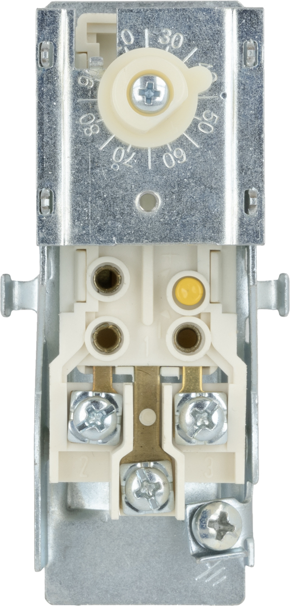 Przeznaczony do sterowania urządzeniami zewnętrznymi, na zasadzie włącz/wyłącz.Włącza lub wyłącza sterowane urządzenie w zależności od temperatury zmierzonej na powierzchni kontaktu i nastawionej na pokrętle.