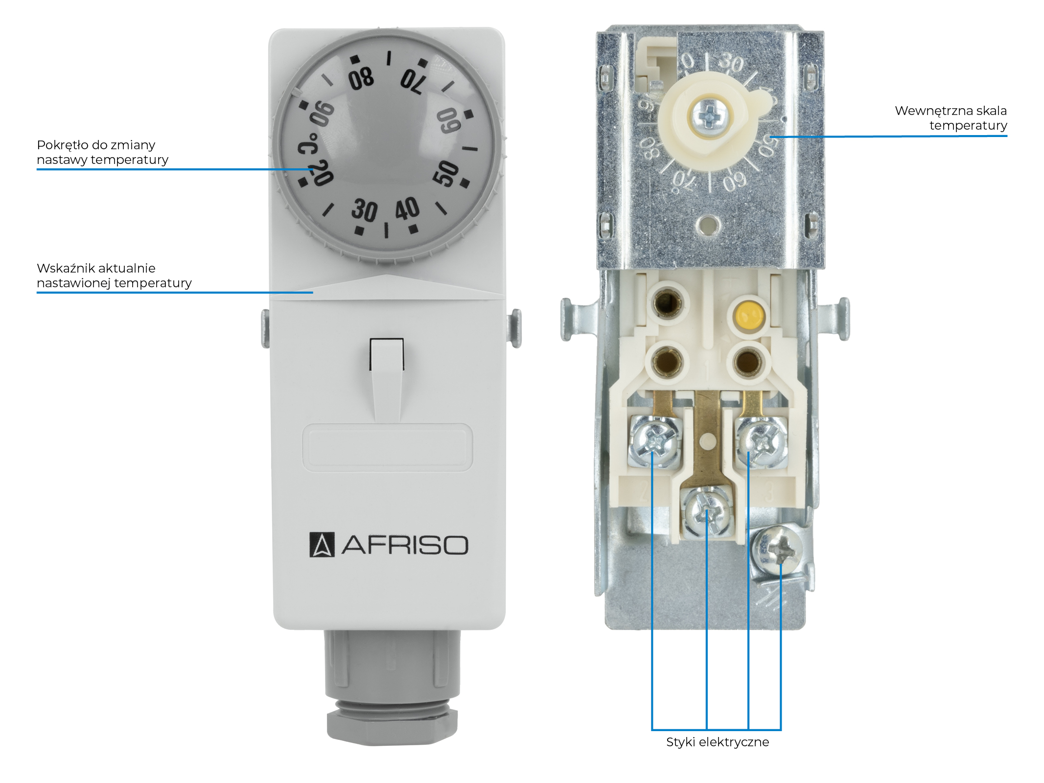 Czujnik temperatury HVAC AFRISO BRC (nastawa zewnętrzna) poł. potrójne, zakres pom. 20-90'C