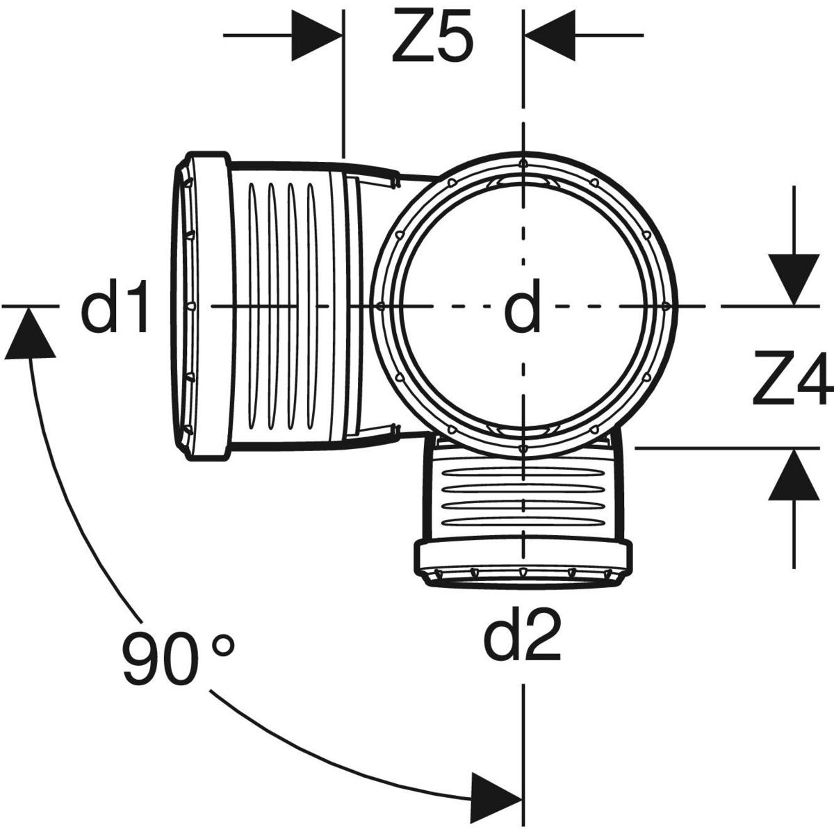 Czwórnik GEBERIT Silent-PP polipropylen, 110 mm x 75 mm x 110 mm x 110 mm DN 100 x DN 70 x DN 100 x DN 100, mw x mw x mw x mw