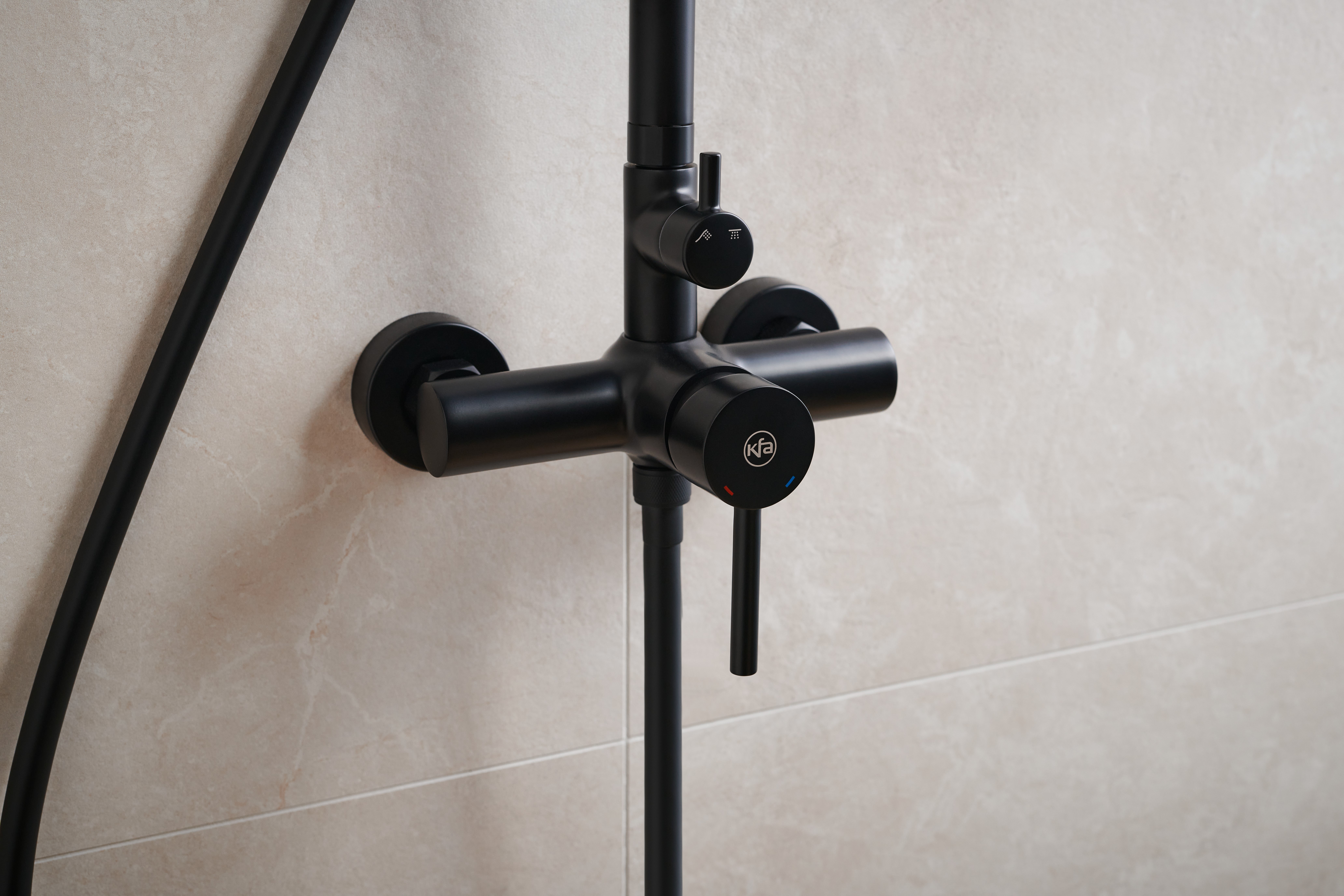 Deszczownia MOZA z baterią natryskową ścienną, black