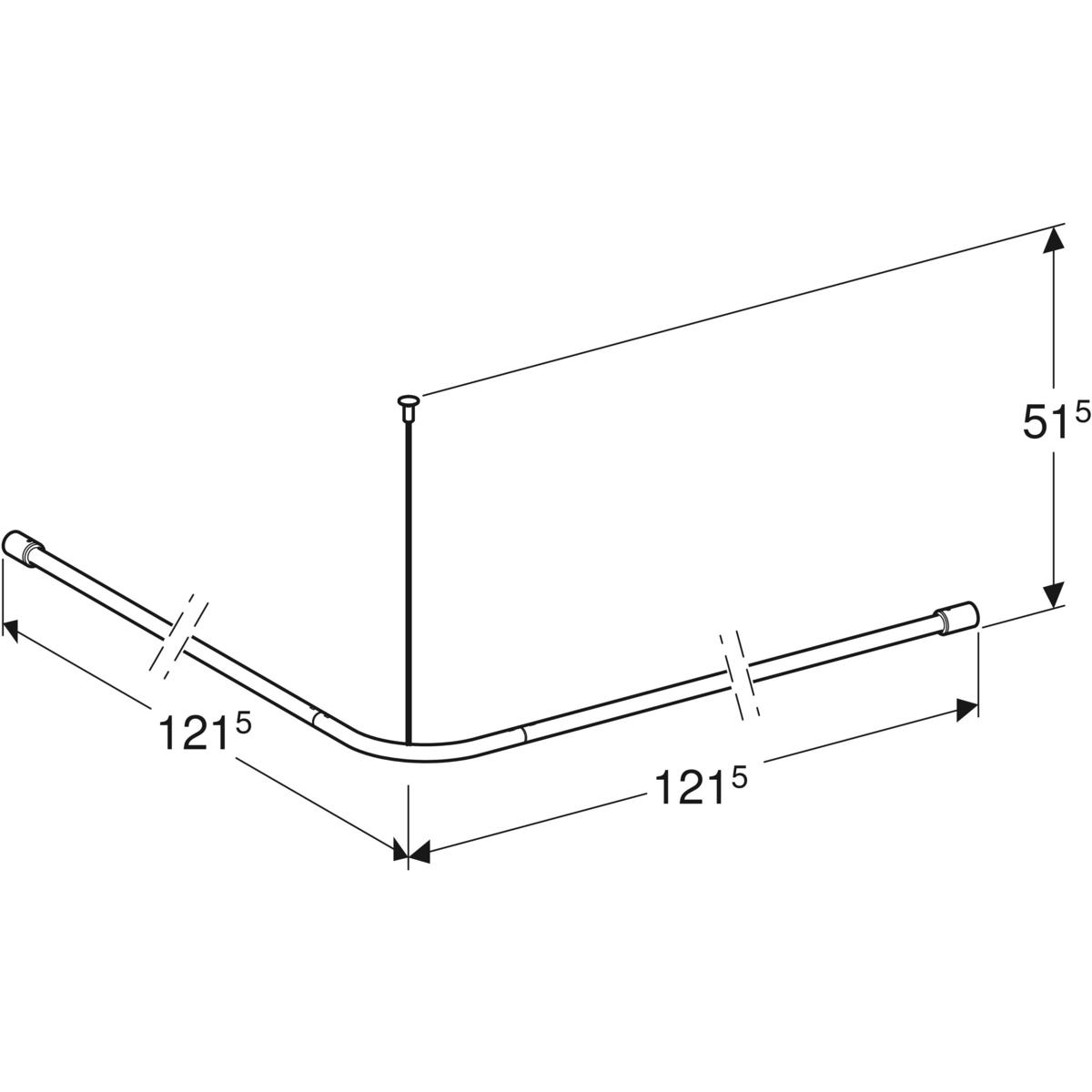 Wymiary: 120 x 120 cm. Stal nierdzewna, powierzchnia gładka, wypolerowana. Średnica: ø 22 mm, montaż narożny, z dodatkowym mocowaniem stropowym 500 x 4 mm. W komplecie: uchwyty do zasłonki prysznicowej z tworzywa sztucznego, kolor biały (24 sztuki), zestaw montażowy do ściany twardej (cegła pełna, beton). Nowa konstrukcja umożliwia dowolne skrócenie wieszaka we własnym zakresie.