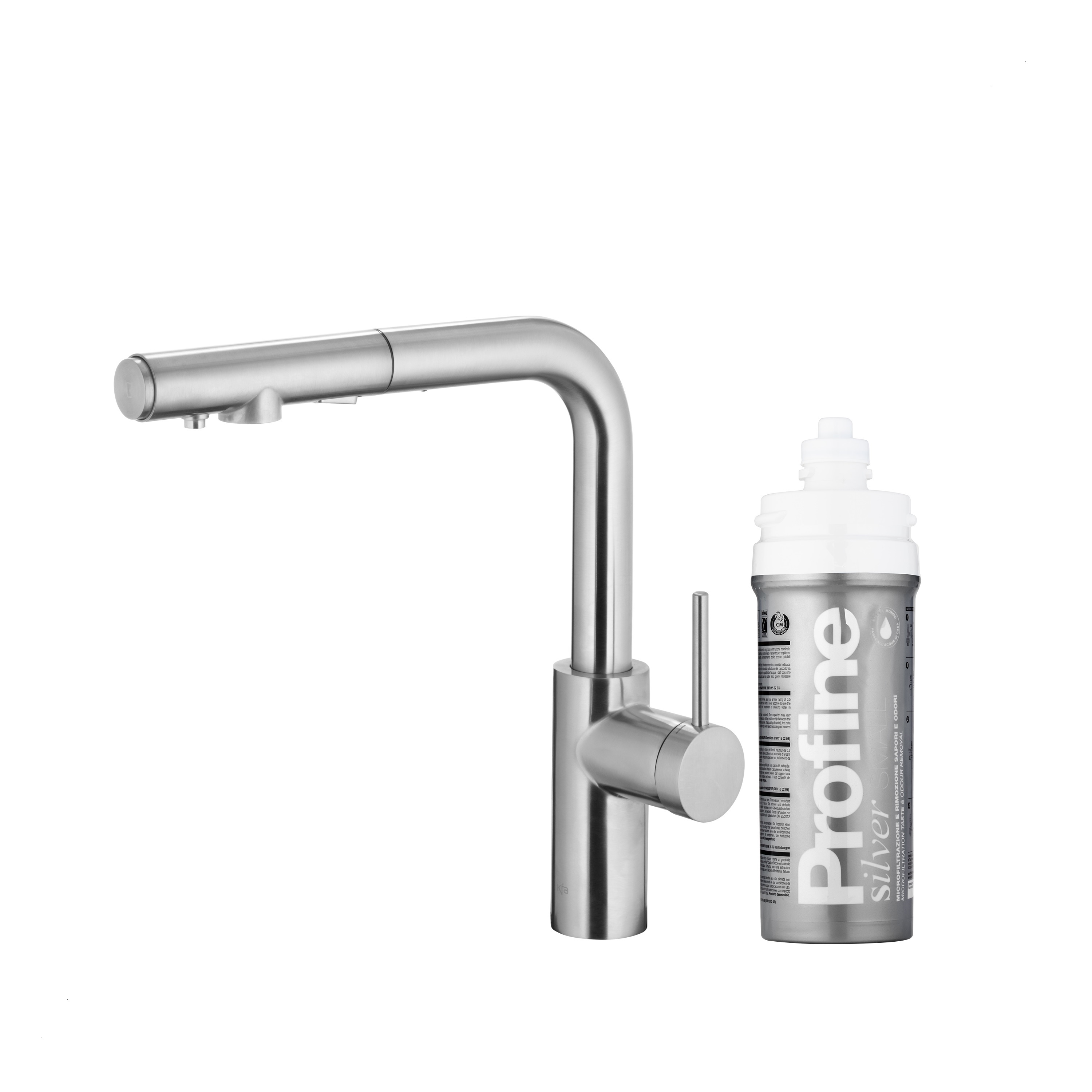 DUERO PURE BASIC PULL-OUT BATERIA KUCHENNA Z FUNKCJĄ FILTRACJI WODY I WYCIĄGANĄ WYLEWKĄ, STAL NIERDZEWNA + ZESTAW FILTRUJĄCY PROFINE SILVER S