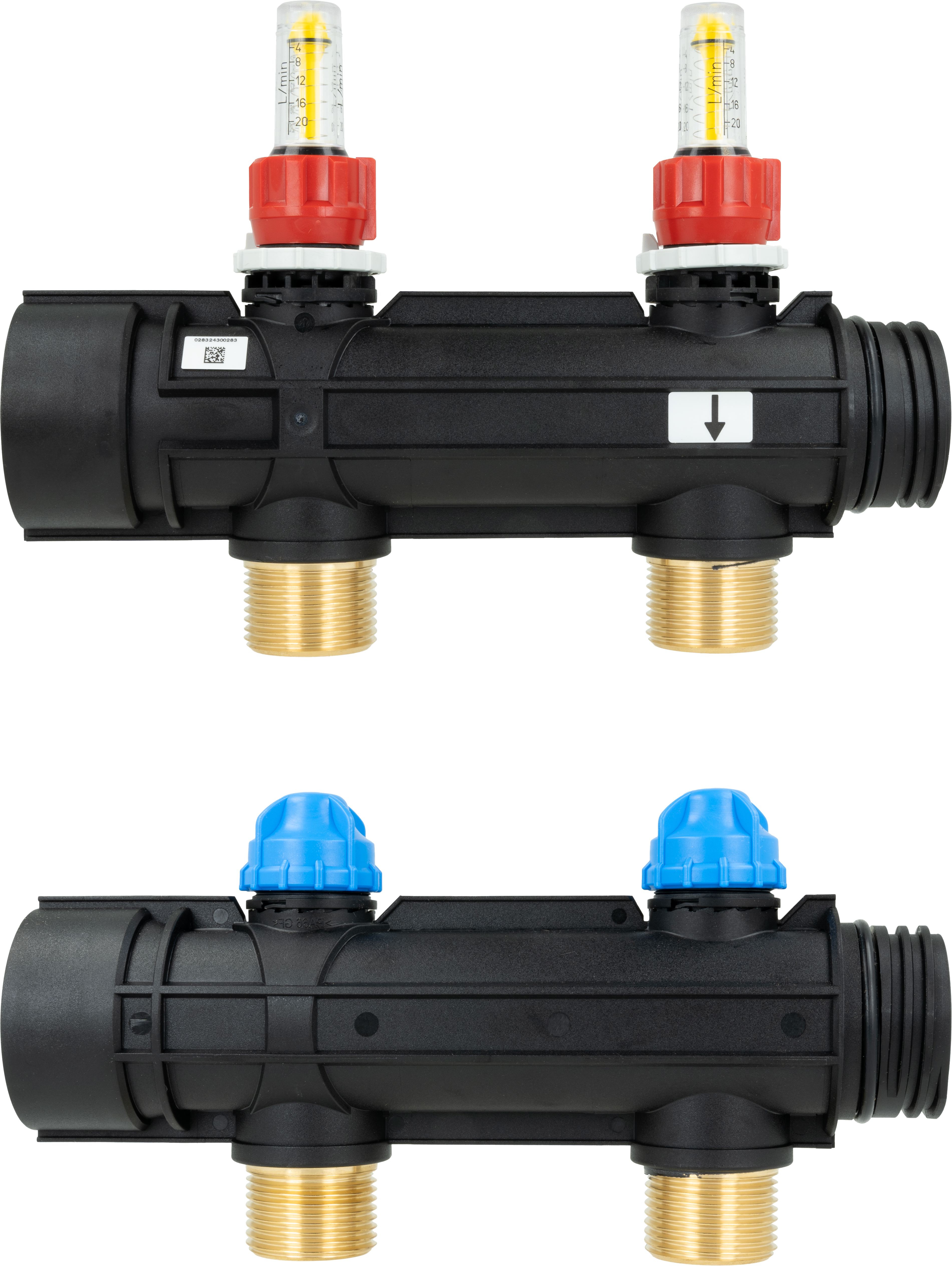 Stosowane w dużych instalacjach grzewczych/chłodzących lub w instalacjach dolnego źródła ciepła/chłodu.Montowane bezpośrednio do modułu podstawowego lub standardowego rozdzielacza ProCalida IN 1 1/2".