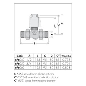 Przystosowany do siłowników termoelektrycznych serii 6563, 6561, 6562 i 6564. Przyłącze: G 3/4" A (ISO 228-1) GZ. Maksymalne ciśnienie pracy: 10 bar. Zakres temperatury medium: 0–95 °C. △p max.: 1,2 bar. Kv: 3,7 m³/h.