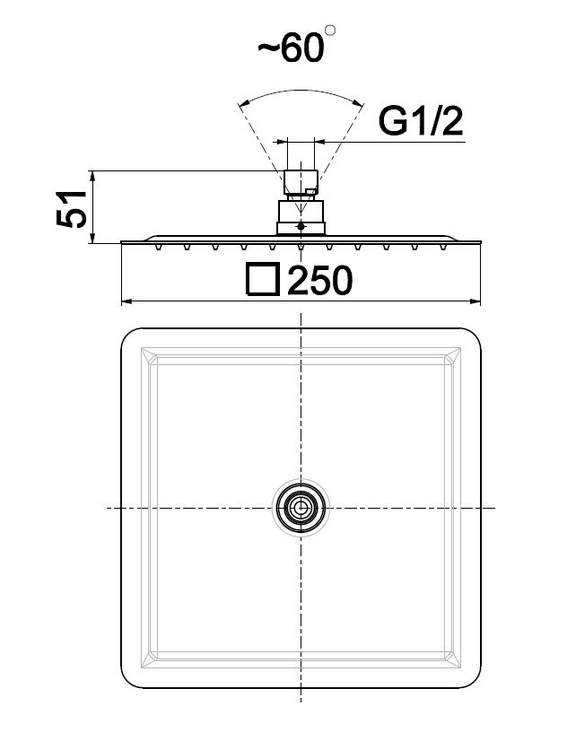 Głowica natryskowa KFA Armatura 250x250, pudełko, kolor chrom kwadratowy