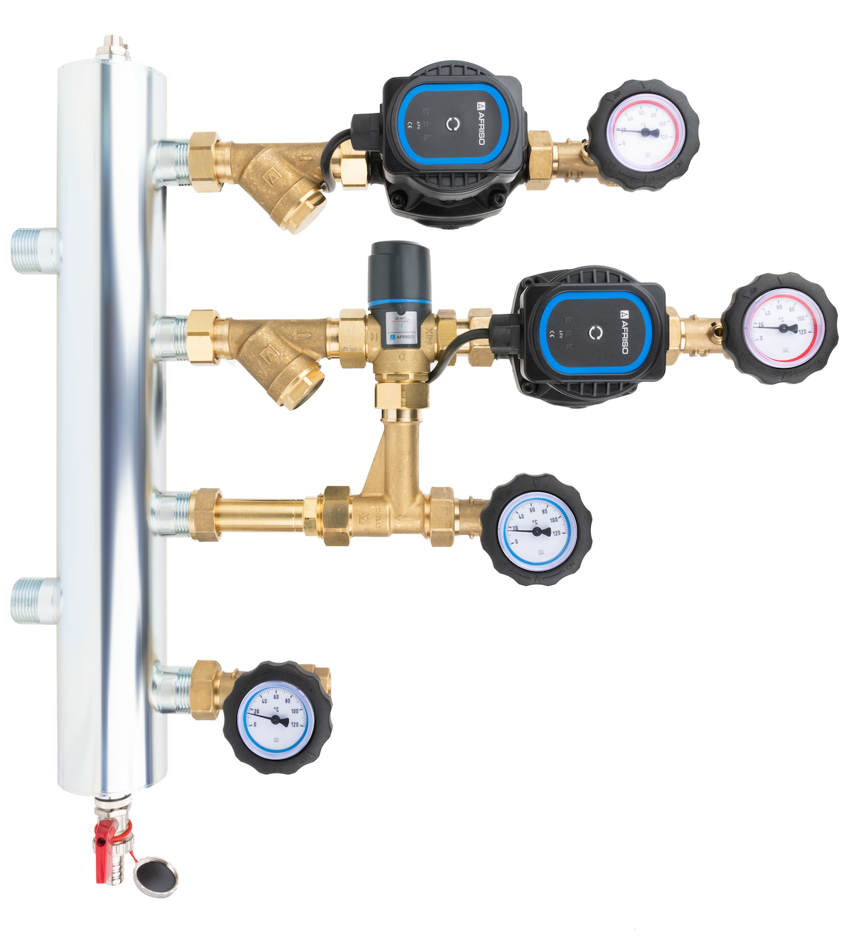 Stosowany w instalacjach grzewczych i chłodzących.Montowany na ścianie między źródłem a instalacją.