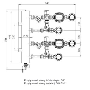 Pozwala na przyłączenie dwóch obiegów grzewczych/chłodzących.