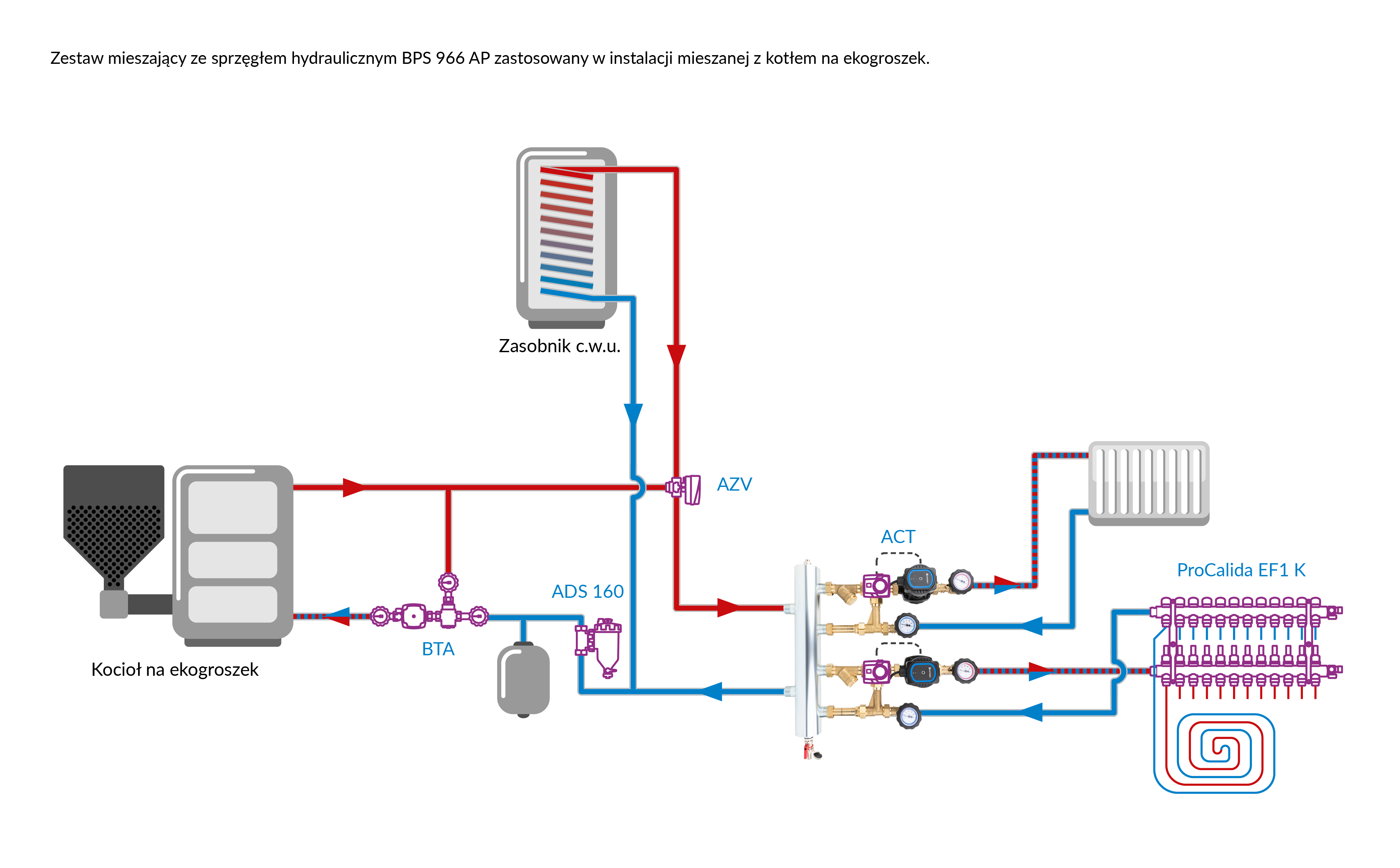 Stosowany w instalacjach grzewczych i chłodzących.Montowany na ścianie między źródłem a instalacją.
