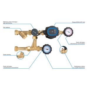 Grupa pompowa AFRISO BPS 996 AP nakrętka x GW 1'' x 3/4'', z zaworem mieszającym, z pompą obiegową AFRISO APH 160 15-7/130 mm